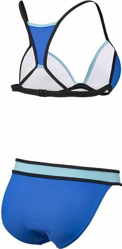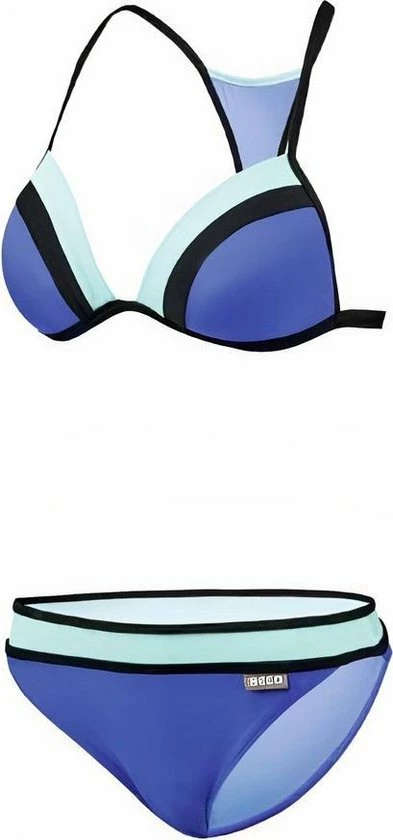 Mooie sportieve bikini met B-cup voor dames in de kleuren blauw, turquoise en zwart. De bikini behoort tot de categorie functionele zwemkleding. Je kan deze mooie bikini dus ook dragen tijdens het banenzwemmen. De bikini is een regular fit model en heeft gevormde cups. Met deze vrolijke bikini ben jij helemaal klaar voor de zomer!