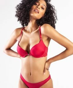 Merkloos Gaspara Soft Padded Half Cup Tulle Plunge BH | Black Friday SALE – WIJN-ROOD – Maat 80D