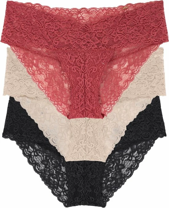 90% Polyamide, 10% Elastomeer: Kanten dames slip van Dorina, met 3 kleuren in een 3-pack