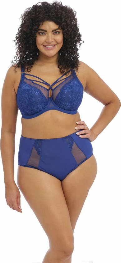 Elomi Brianna Slip 3XL van het merk Elomi – Ontdek de mooie Elomi Brianna slip in een prachtige diepe blauwe kleur. De volledig bedekkende Elomi Brianna Slip komt tot aan de taille. Heeft een gladde voor en achterkant met aan de voorkant 2 doorschijnende stroken mesh met bloemenkant. Het broekje heeft een katoenen kruisje. Verkrijgbaar in de maten M t/m 4XL. Dubbel gelaagde stretch mesh voor en achter Zijpanelen van doorschijnend tule met overlays van stretchkant Materiaal: 91% Polyamide, 6% Elastaan, 3% Polyester Maak je set compleet met de Elomi Brianna Plunge BH . Ons wasadvies voor lingerie en badmode is altijd handwas. Tip: bestel voor je delicate was een heerlijke fles SOAK , hiermee kun je je was in slechts 15 minuutjes laten “soaken” en bespaar je ook nog eens veel water. De missie van Elomi is om vrouwen te helpen inspireren en in staat te stellen hun leven te leiden zonder grenzen. Ze bestaan om verschillende vormen, looks en maten te verdedigen. Met dat in gedachten komen onze belangrijkste kernwaarden voort uit vrouwelijkheid, passie, inspiratie, innovatie en kracht. Elomi werd in 2008 gelanceerd als een dapper nieuw lingerieconcept, en tot op de dag van vandaag hebben ze de grenzen verlegd om een pionier te worden voor de gemeenschap met een voller figuur. Met de jarenlange expertise streven ze er consequent naar om te innoveren en de dragers trend gedreven looks te geven in fantastische pasvormstijlen die je kunt vertrouwen, tot aan een K-cup.