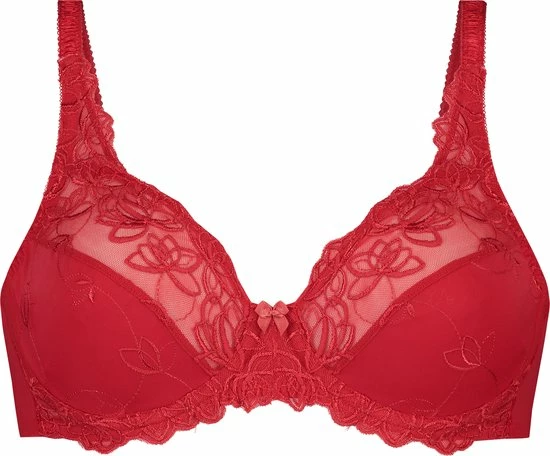 Deze niet-voorgevormde beugel bh is uitgevoerd in een ondoorzichtige stof en aan de bovenzijde afgewerkt met semi-transparant kant. De cups zijn versierd met een elegant bloemenpatroon. Maak je set compleet met de bijpassende Diva slip.
