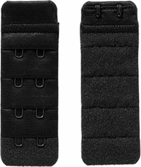 Heel handig als je Beha te strak zit door bijvoorbeeld gewichtstoename of door een zwangerschap. De Beha verlenger maakt je Beha weer passend. Zodra je weer op je oude gewicht bent past je Beha gewoon weer. De verlengers zijn te verkrijgen in verschillende maten, aantal haakjes en verschillende kleuren. Hoogte 3,4 cm Breedte 7,7 cm Afstand tussen de haken 1,8 cm Beha verlenger 3 haaks Zwart (2pack) voor een betere pasvorm