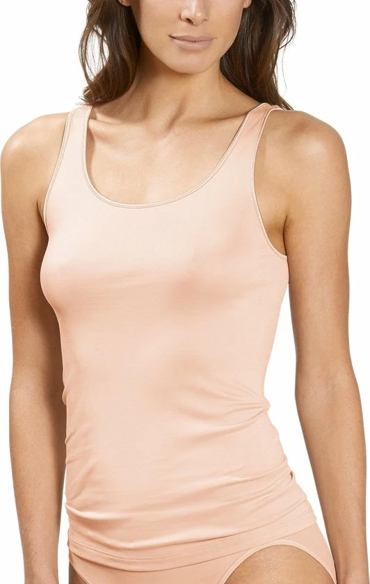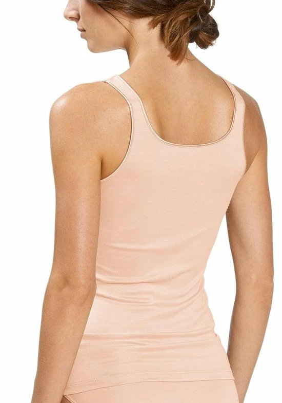 Dames hemdje met brede schouderbandjes behorende bij de Mey Emotion Collectie. Een heel prettig dragend hemdje met aan de binnenzijde viscose en aan de buitenzijde microvezels voor een perfecte warmte- en vochtregulatie. Het gladde weefsel maakt dat de kleding er gemakkelijk overheen glijdt. De schouderbandjes zijn omzoomd met een satijnen biesje. Viscose is een semi natuurlijke vezel gemaakt van natuurlijke houtvezels. Viscose is zacht, neemt uitstekend vocht op en heeft een luxe zijdeachtige uitstraling.