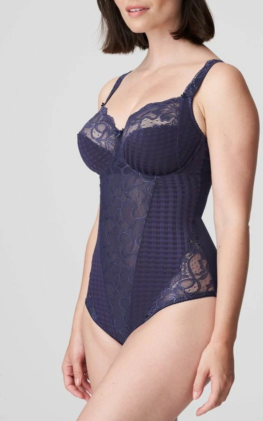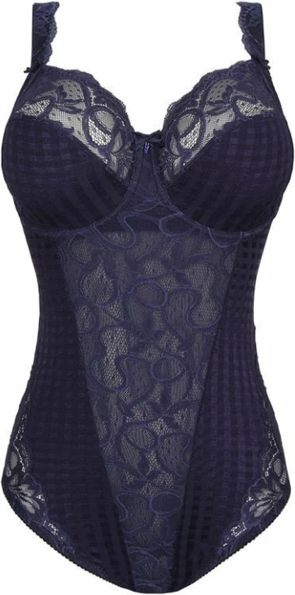 Vrouwelijke body van trendy ruitjesstof en sexy kant.