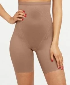 Spanx Thinstincts 2.0 – High-Waisted Mid-Thigh Short – Maat XL – Kleur Café Au Lait (Dark Nude)