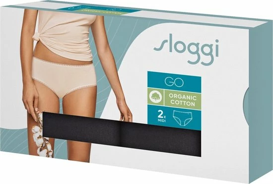 Met de slips uit dit 2-pack van Sloggi zit je altijd goed! De set bestaat uit twee zwarte slips. De slips zijn afgewerkt met zachte randjes waardoor je geen last hebt van schurende en irriterende randen. Het midi model heeft brede zijdelen en valt tot op de heup. De artikelen uit de GO serie voor dames zijn gemaakt van organisch katoen en dus ook nog eens goed voor het milieu!