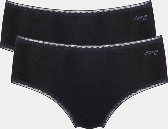 Sloggi Dames Basic Midi GO Organische Slip 2-pack – XS – Zwart