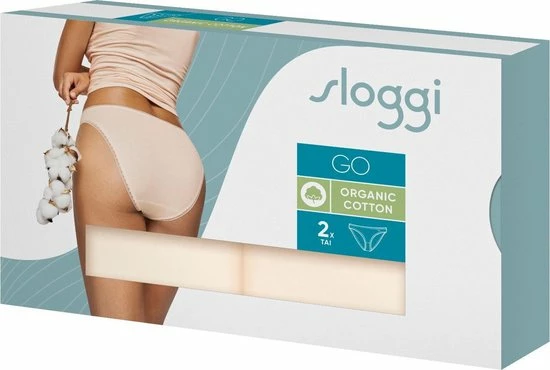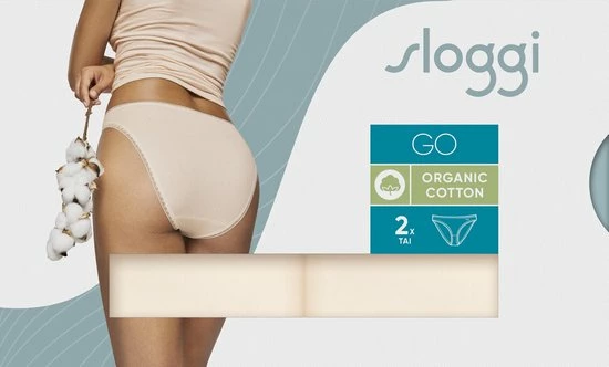 Met de slips uit dit 2-pack van Sloggi zit je altijd goed! De set bestaat uit twee beige tai slips. De slips zijn afgewerkt met zachte randjes waardoor je geen last hebt van schurende en irriterende randen. Het tai model heeft hoger uitgesneden beenopeningen en valt tot op de heup. De artikelen uit de GO serie voor dames zijn gemaakt van organisch katoen en dus ook nog eens goed voor het milieu!