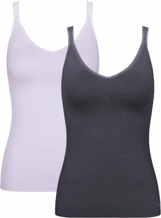 Leg de perfecte basis onder al je outfits met de hemden uit dit 2-pack van Sloggi! De set bestaat uit een donkerpaarse en een lila top. Door de katoenen stof met stretch dragen de tops zeer comfortabel en vormen ze zich mooi om jouw lichaam. De tops hebben daarnaast een diepuitgesneden hals en mooi afgewerkte bandjes. De artikelen uit de GO serie voor dames zijn gemaakt van organisch katoen en dus ook nog eens goed voor het milieu!