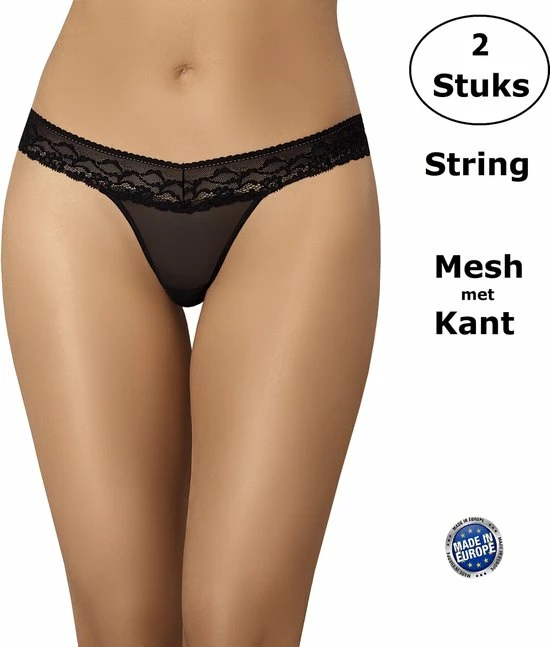 Comfortabele Klassieke String van een dun en fijn aanvoelende mesh stof gecombineerd met Kant.